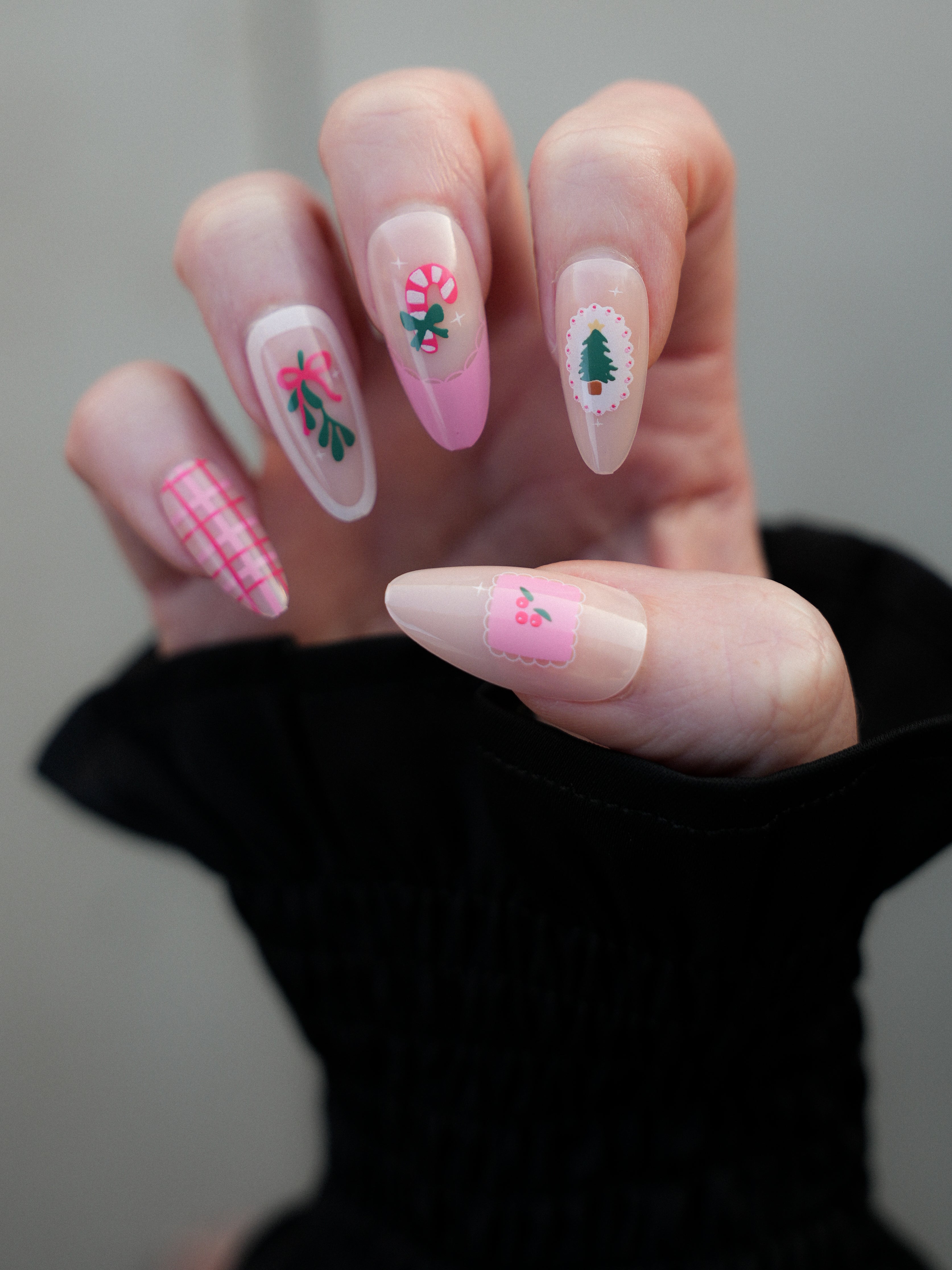 Step into a world of pink perfection with Pinkmas Magic, a long almond manicure that brings festive flair with a girly twist. Featuring a mix of playful pink French tips, cozy plaid accents, and adorable candy cane details β this set is everything sweet and stylish about the holidays.