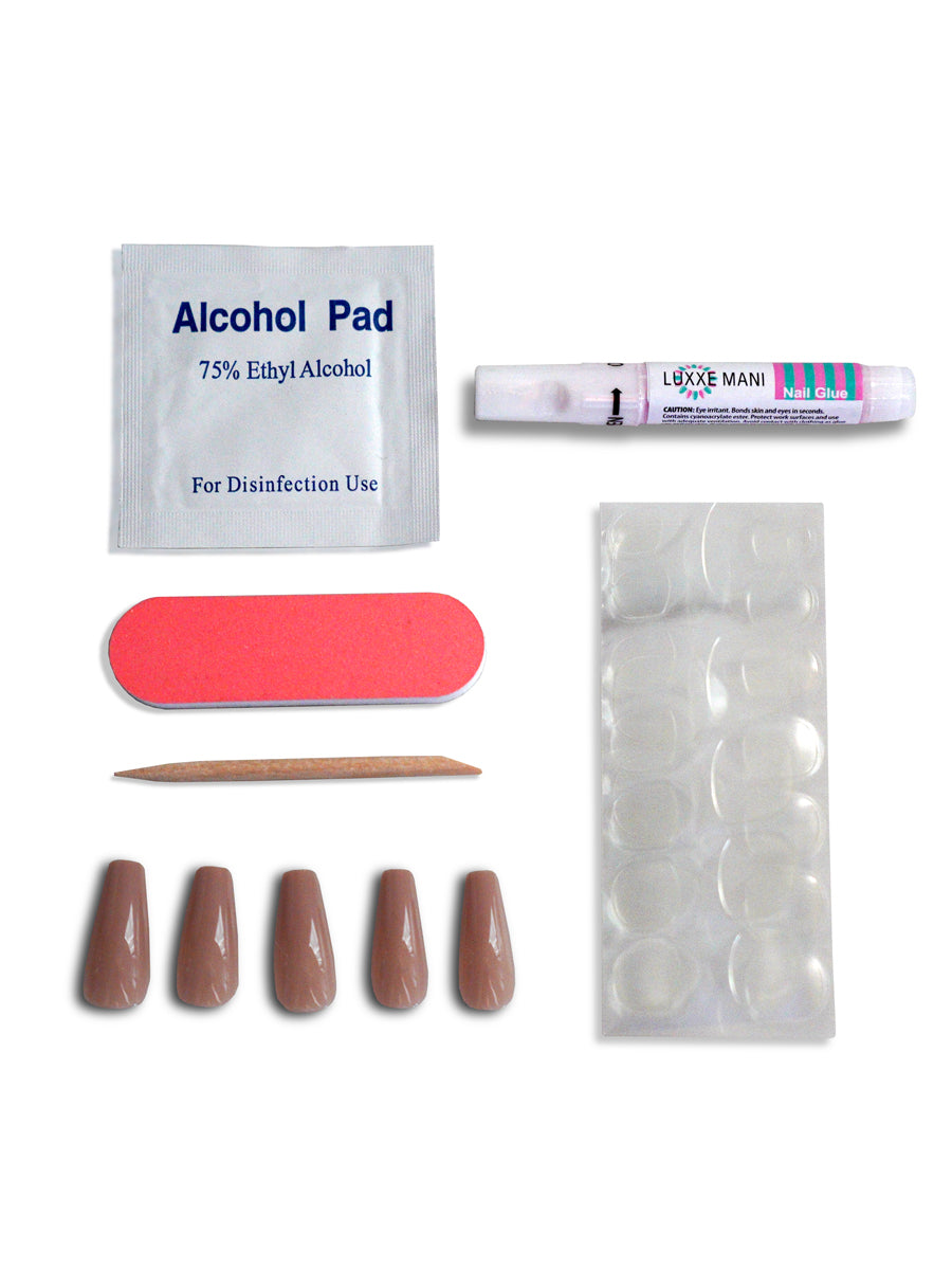 Unleash your inner vixen with the Barely Naughty Press-On Manicure Set. This alluring collection features 24 nails in 12 versatile sizes, ensuring a perfect fit for every finger. Crafted in a sophisticated Long Coffin shape, each nail boasts a stunning nude hue, striking the perfect balance between elegance and edginess.