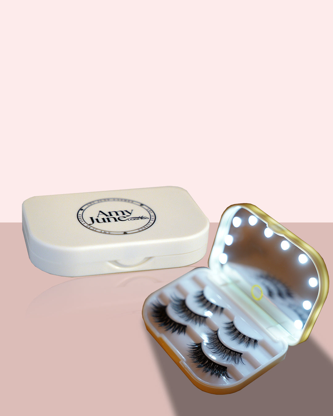 Introducing the Amy June Lashes Light Up Lash Storage Case – your go-to travel companion for flawless lashes, anytime, anywhere!  This sleek and stylish case holds up to 3 pairs of lashes, keeping them safe and ready for reuse. With a built-in light, it’s perfect for precise lash application, even in low lighting. Whether you're at home or on vacation, this compact case ensures you always have your favorite lashes at hand for effortless glam.