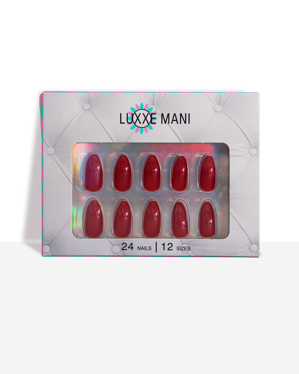 Embrace bold elegance with the Passionate Pomegranate Press-On Manicure Set. This stunning collection features 24 nails in 12 versatile sizes, ensuring a perfect fit for every finger. Crafted in a chic Medium Almond shape, each nail showcases a vibrant red hue that exudes confidence and sophistication.