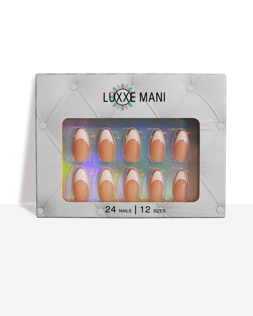 Elevate your nail game with our timeless French Manicure Press-On Set in the signature Medium Almond shape. This classic collection features 24 nails in 12 versatile sizes, designed to ensure a flawless fit for every finger. The iconic French tip, combined with the elegant Medium Almond shape, offers a perfect blend of sophistication and style.