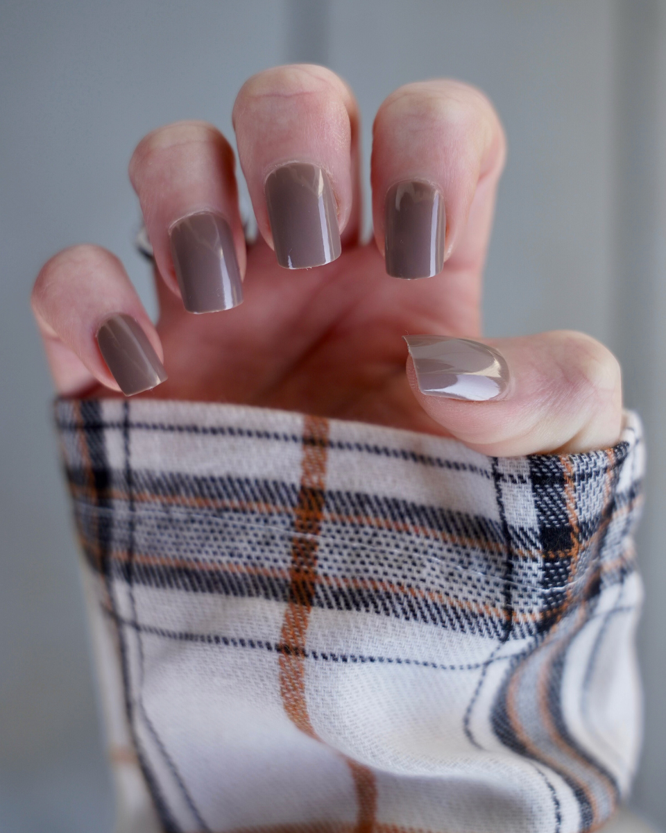 Introducing Velvet Smoke, the ultimate short square nail set in a chic brownish-gray hue. This sophisticated shade exudes a smoky, velvety elegance that's both timeless and modern, making it the perfect neutral for any occasion.